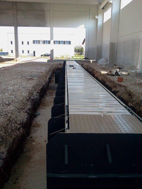 Fossa lavoro modello autoportante 30 ton. da 22 metri con copertura in alluminio manuale in due spezzoni , apertura in tandem.