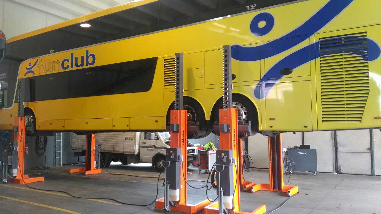 Esempio di un set 6 colonne mobili idrauliche ultimo modello Finkbeiner cavi con nuovo software 2017 , predisposte per accessori forche auto ed altri innovativi accessori , modello IP65 anche per lavaggio.