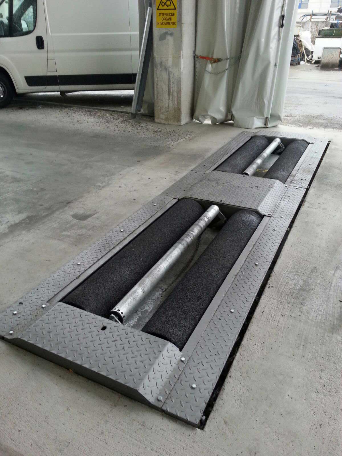 Banco prova freni modello AHS T , modello bandata rulli extra lunghi e diametro 310 mm , omologato . Banco ritenuto universale perché ospita tutti i mezzi sopra i 35 q. sino ad ospitare assali veicoli industriali e macchine operatrici , in vigore dal 2017.