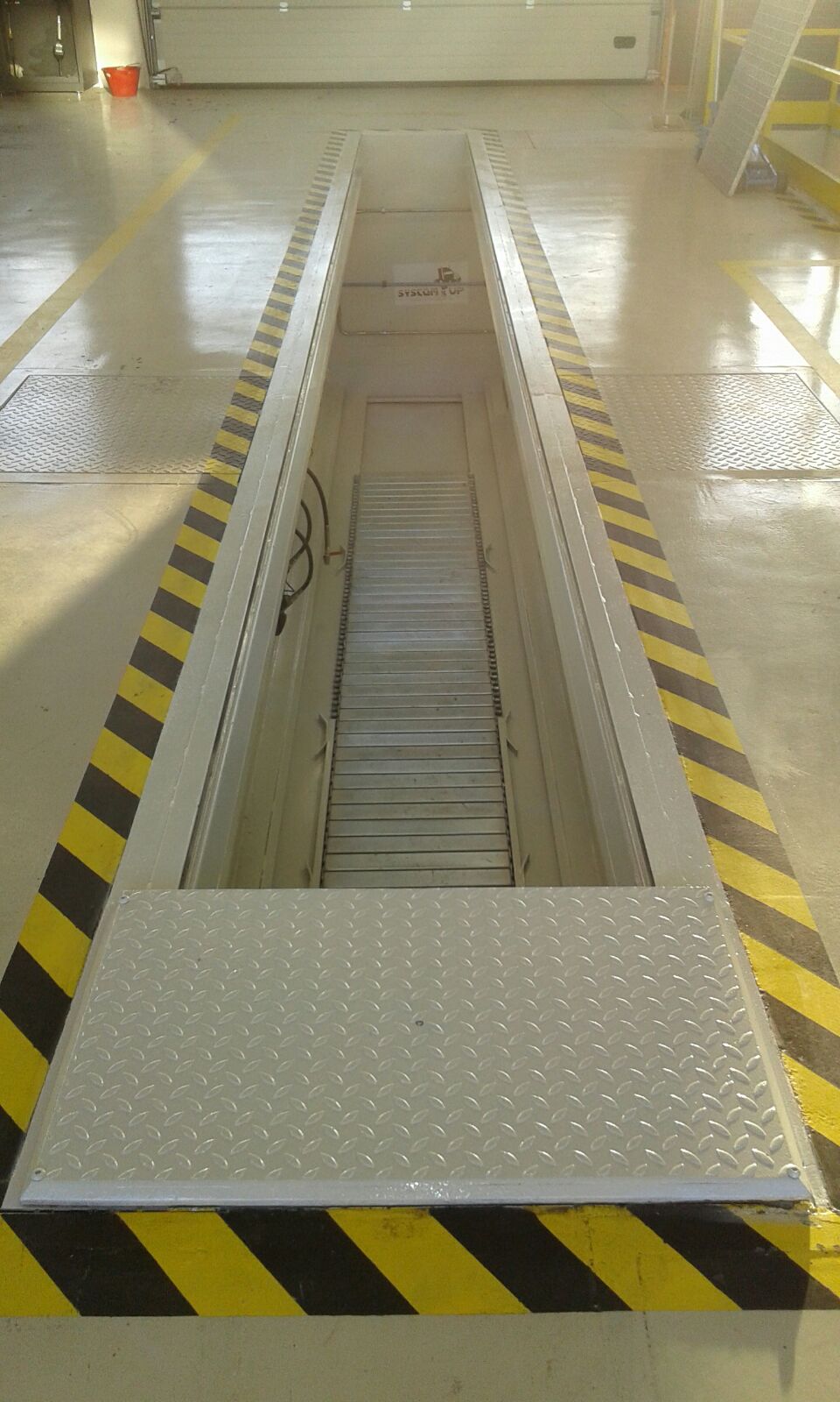Altra fossa prefabbricata in acciaio autoportante data ad un ente ACI con banco prova giochi e copertura carrabile 10 ton. a tapparella.