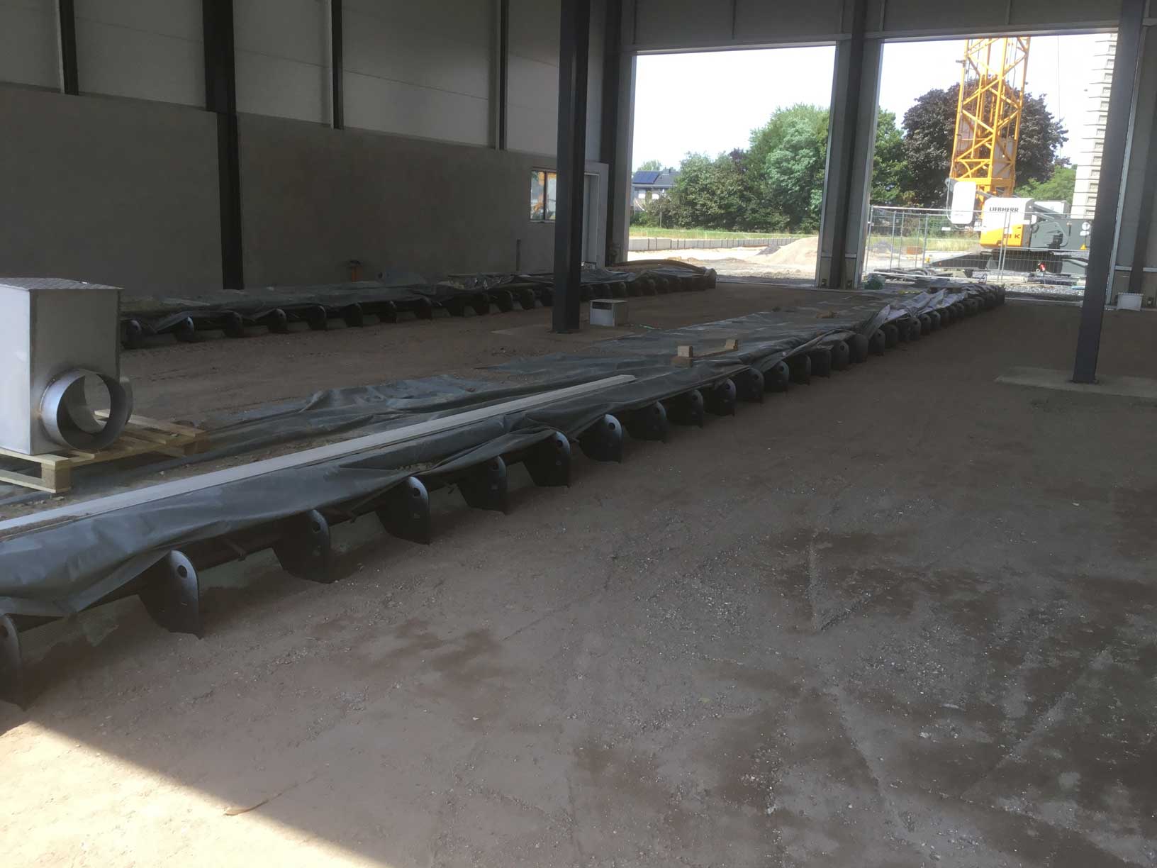Altro esempio di 2 fosse da 25 metri modello AP ( autoportanti ) posate senza cemento ed in attesa lavoro finale pavimentazione.