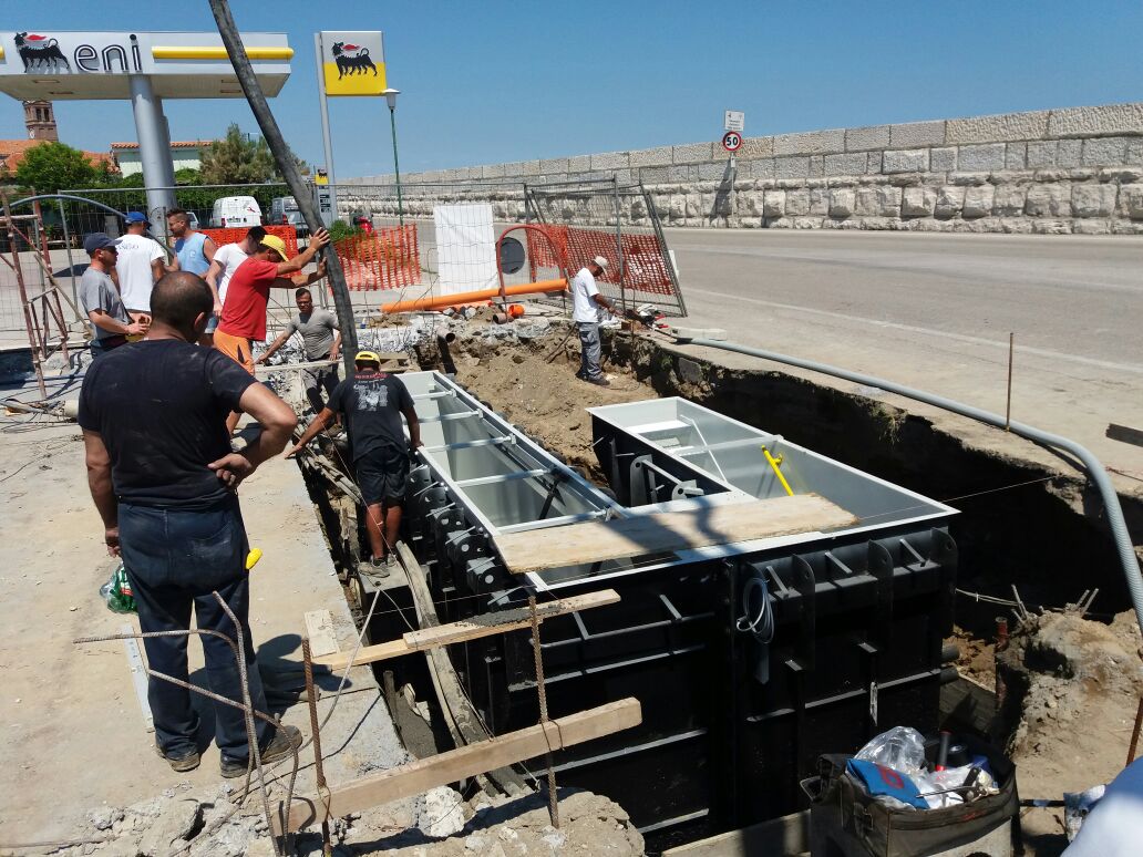 Fossa modello AP per vetture , posata a Venezia in zona ricca di acqua marina . Garantiamo tenuta stagna come richiesto da certificazioni TUV alle quali facciamomparte . Richiedici informazione.