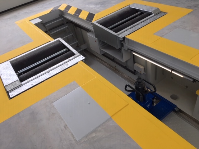 Esempio operazione fossa prefabbricata Global Team modello System UP autoportante senza cemento , con banco prova freni AHS universale rullo extra lungo anche per agricoli e sollevatore fondo fossa scorrevole AC Hydraulic 15000 kg . Chiavi in mano.