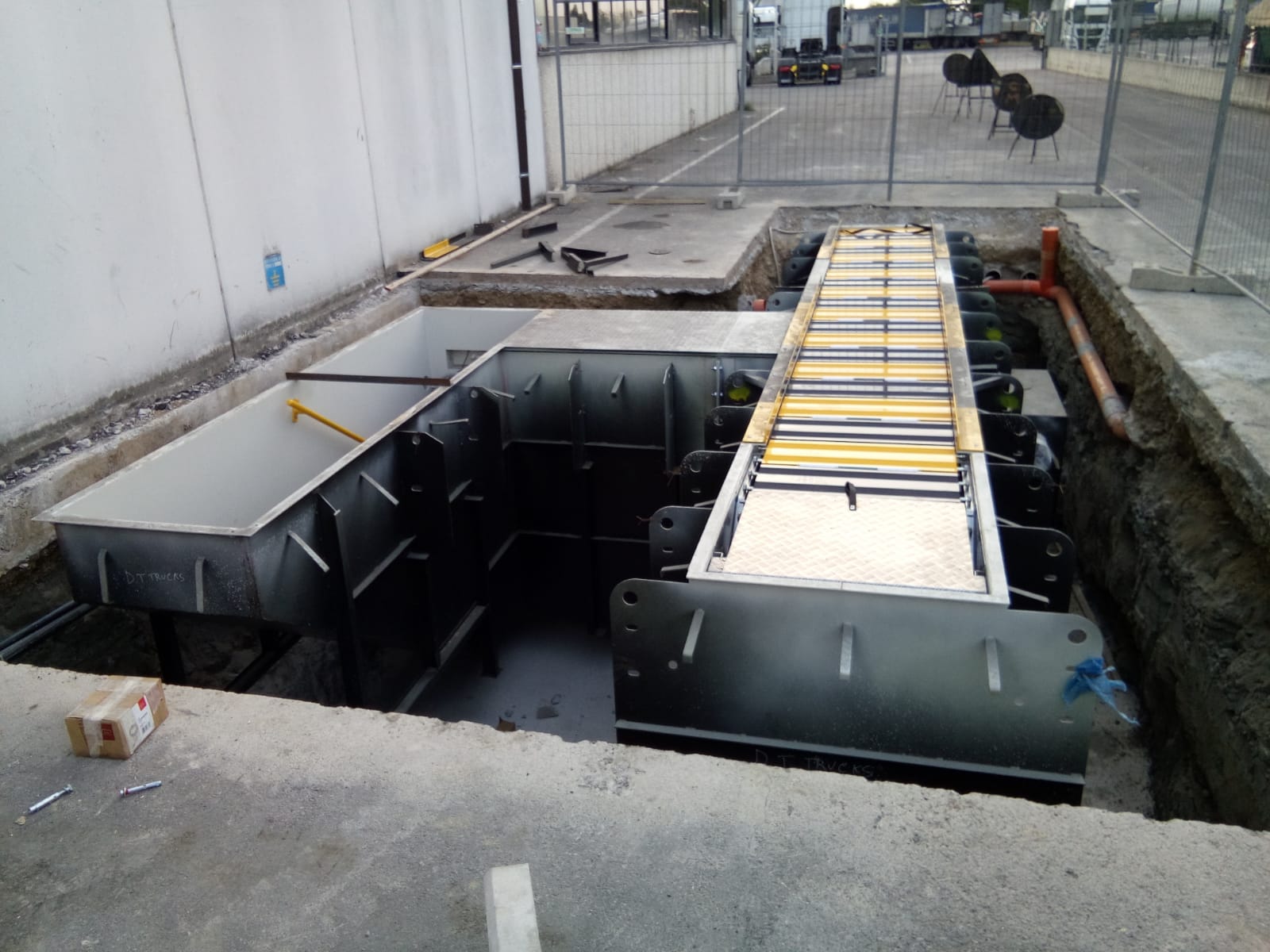 Fossa revisioni con accesso richiesto centrato a disegno , a normativa UNI9721 e con copertura manuale in alluminio 500 kg. al metro