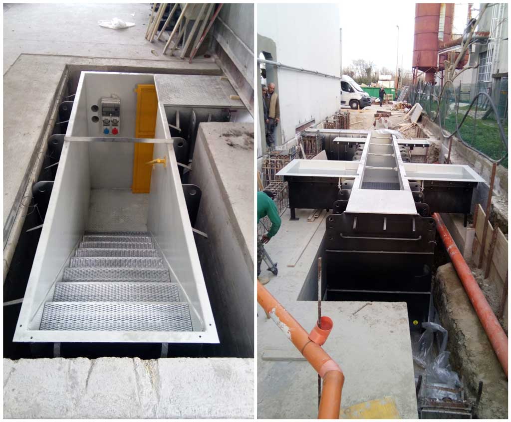Fossa revisioni a normativa uni9721 ideata speciale con tunnel passante da capannone interno a fossa linea revisioni esterna con porta interna sicurezza chiusura passaggio notturno e copertura a tapparella 5000 kg. al metro quadro . Una delle nostre soluzioni studiate per richieste sempre diverse e personalizzate.