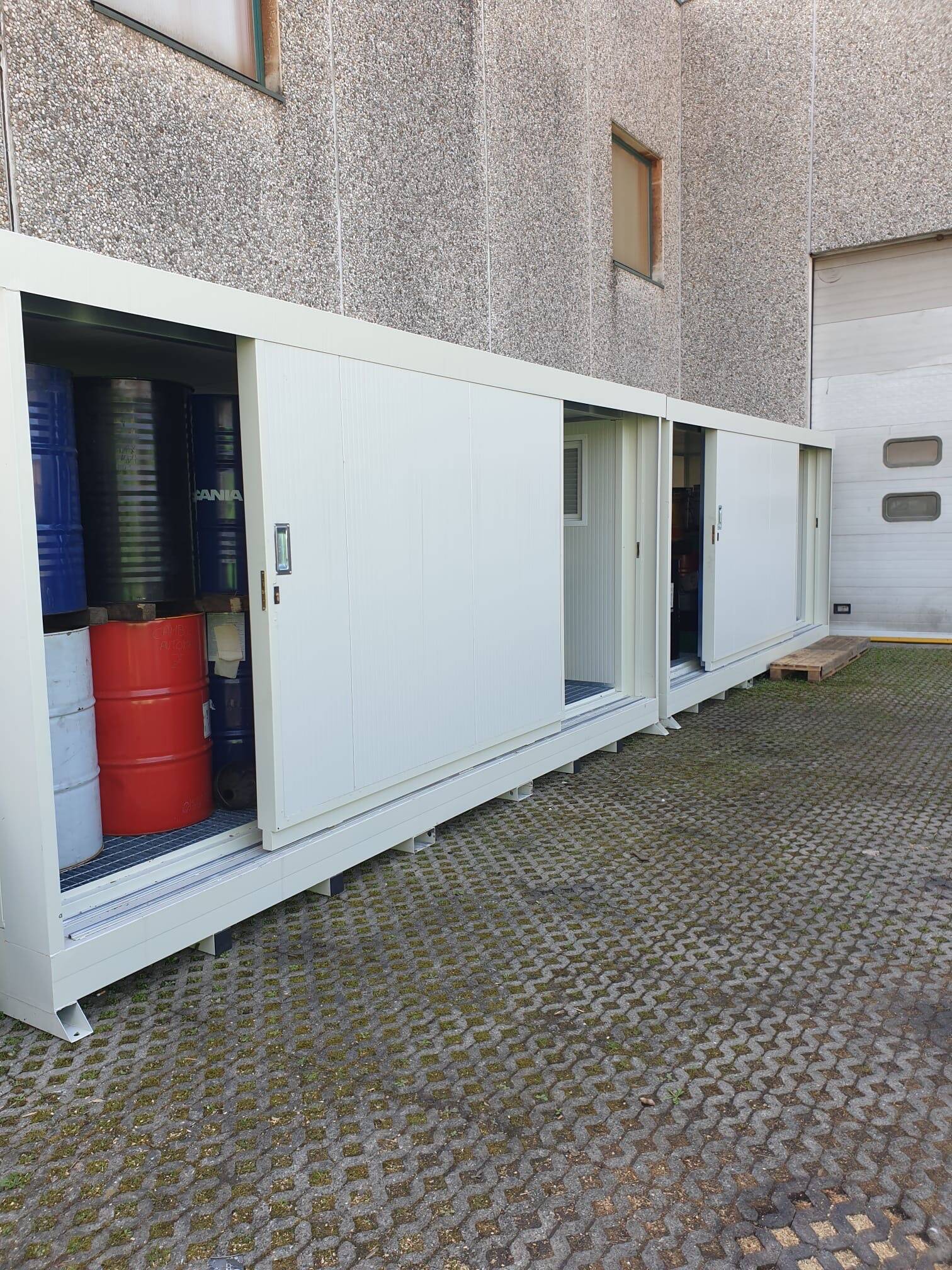 Esempio container prodotto a misura per ospitare a normativa impianto fluidi e stoccaggio merci come gas , fluidi , oli , ecc. Progetto sempre studiato a misura ed in base alle necessità .