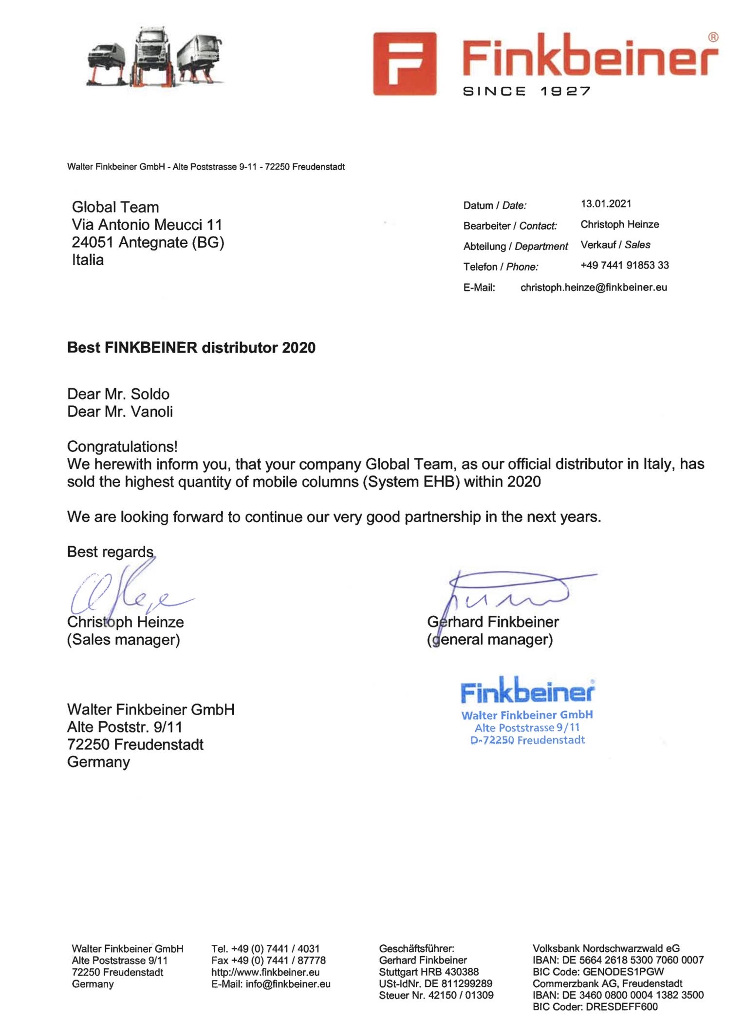 Riconoscimento ufficiale Finkbeiner 2020 come miglior mercato prodotti Finkbeiner raggiunto in una nazione a livello mondiale . Uno speciale ringraziamento a tutti i nostri clienti che hanno scelto i prodotti Finkbeiner da noi distribuiti .