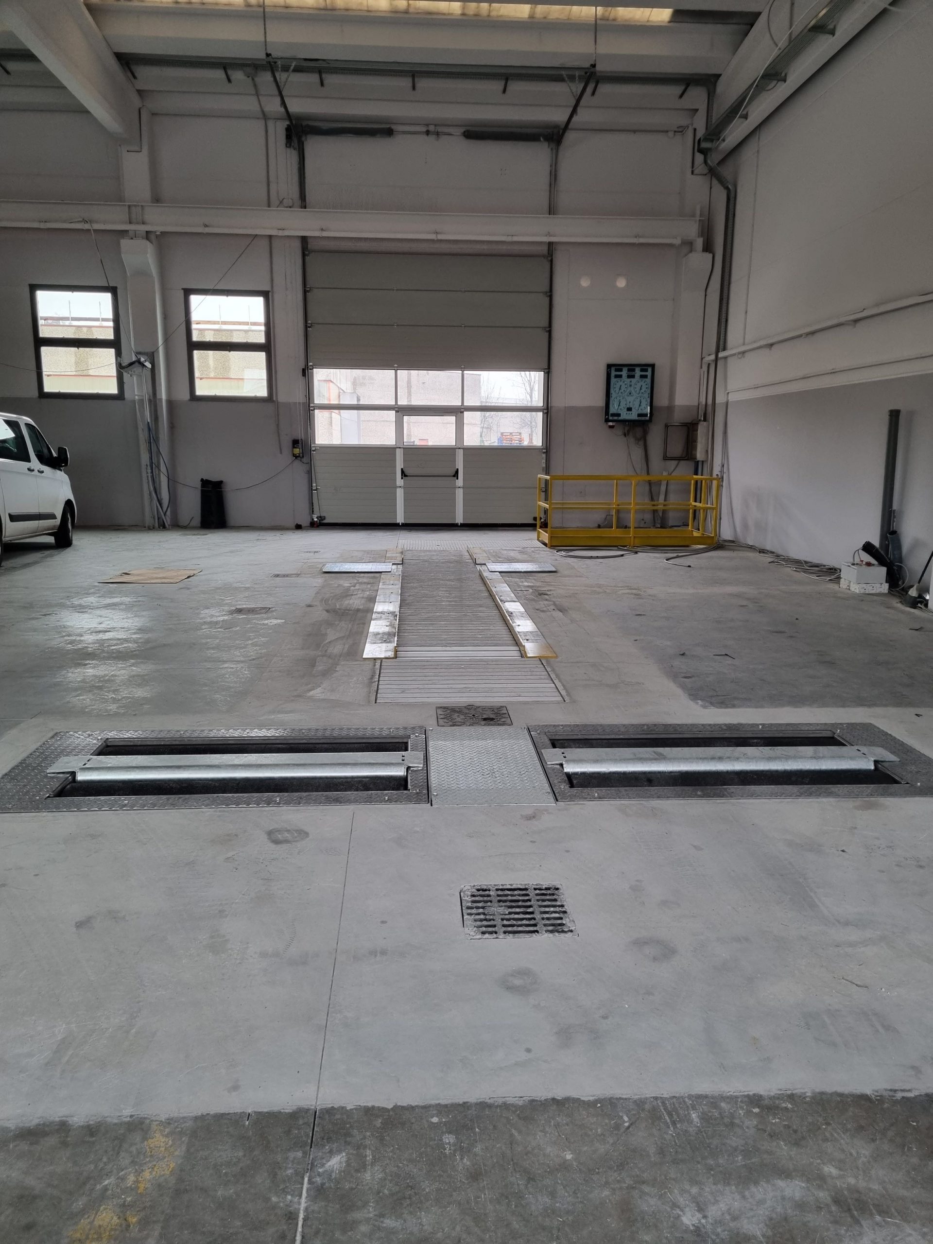 Altra libera revisioni con Banco freni omologato AHS universale rulli 310mm extra larghi anche agricoli + fossa prefabbricata Global Team e coperture in alluminio carrabili 15 ton./metro . Chiavi in mano