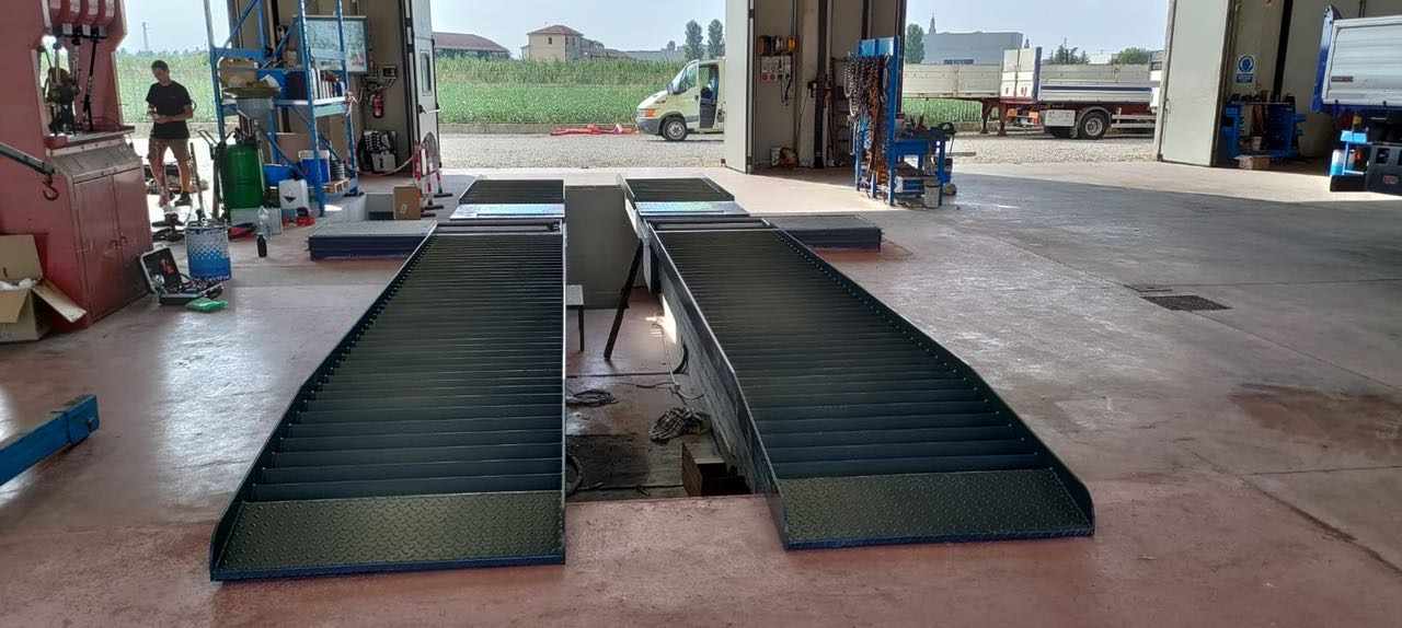 Esempio di lavori da noi eseguiti in maniera speciale ed innovativa . Qui per adattare una fossa ove non si poteva rompere pavimento per abbassarla a 1,8 metri come richiedono le UNI9721 per eseguire le revisioni trucks , abbiamo ideato una struttura sopra elevata con la quale abbiamo raggiunto altezza corretta ed incassato banco freni e giuochi in modo di non interferirsi . Tutto con progetto precedentemente mostrato alla motorizzazione della zona cliente . Operazione perfetta ed approvata .
