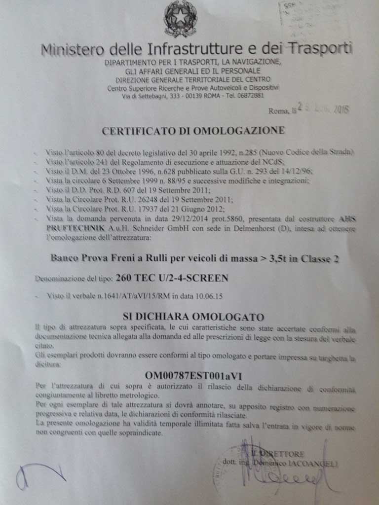 Omologazione raggiunta della gamma banchi prova freno AHS veicoli pesanti in classe 2 . Scoprite le molte novità AHS nel settore veicoli industriali ed agricoli.