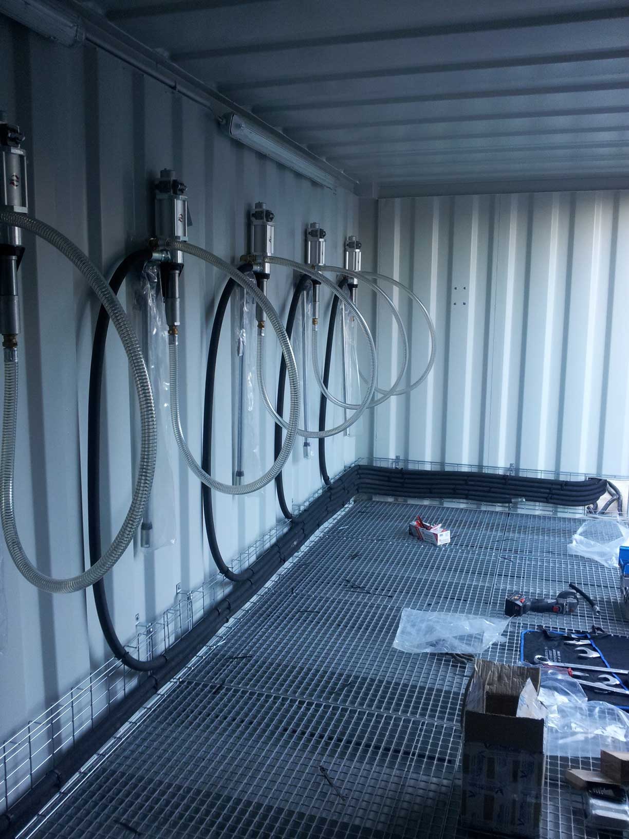 Container allestito per partenza impianto distribuzione fluidi. A normativa.