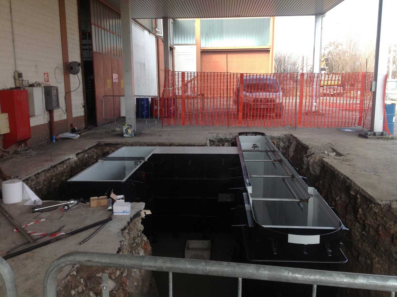 Fossa revisioni UNI9721 con accesso sinistro centrato alla fossa ispettiva. Richiesta speciale che eseguiamo rispettando le esigenze del cliente ma attenendoci scrupolosamente alle normative in vigore.