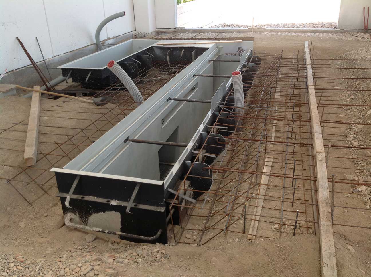 Uno degli esempi di fossa revisione posata prima del getto pavimentazione.