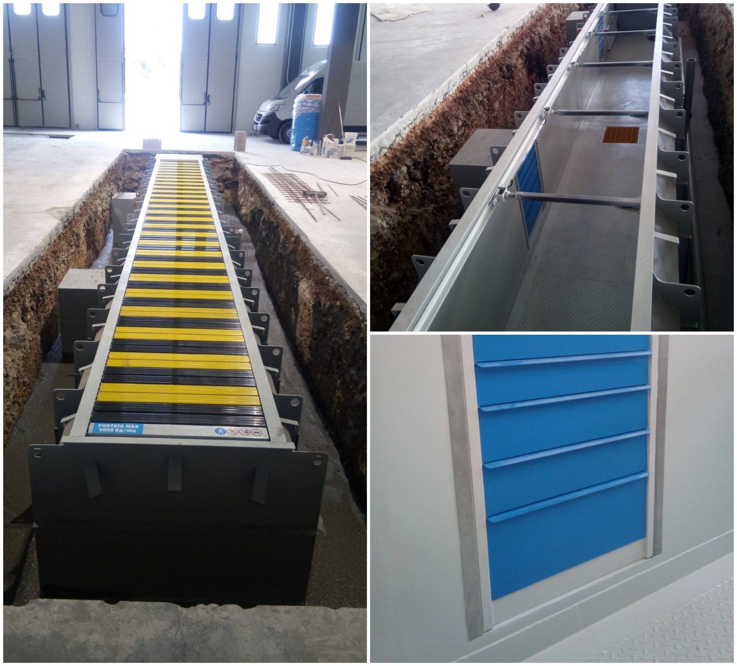 Posa due nuove fosse da 12 metri con cassettiere interne incastonate a misura e con copertura carrabile in alluminio carrabile 15000 kg. Power 15 Global Team .