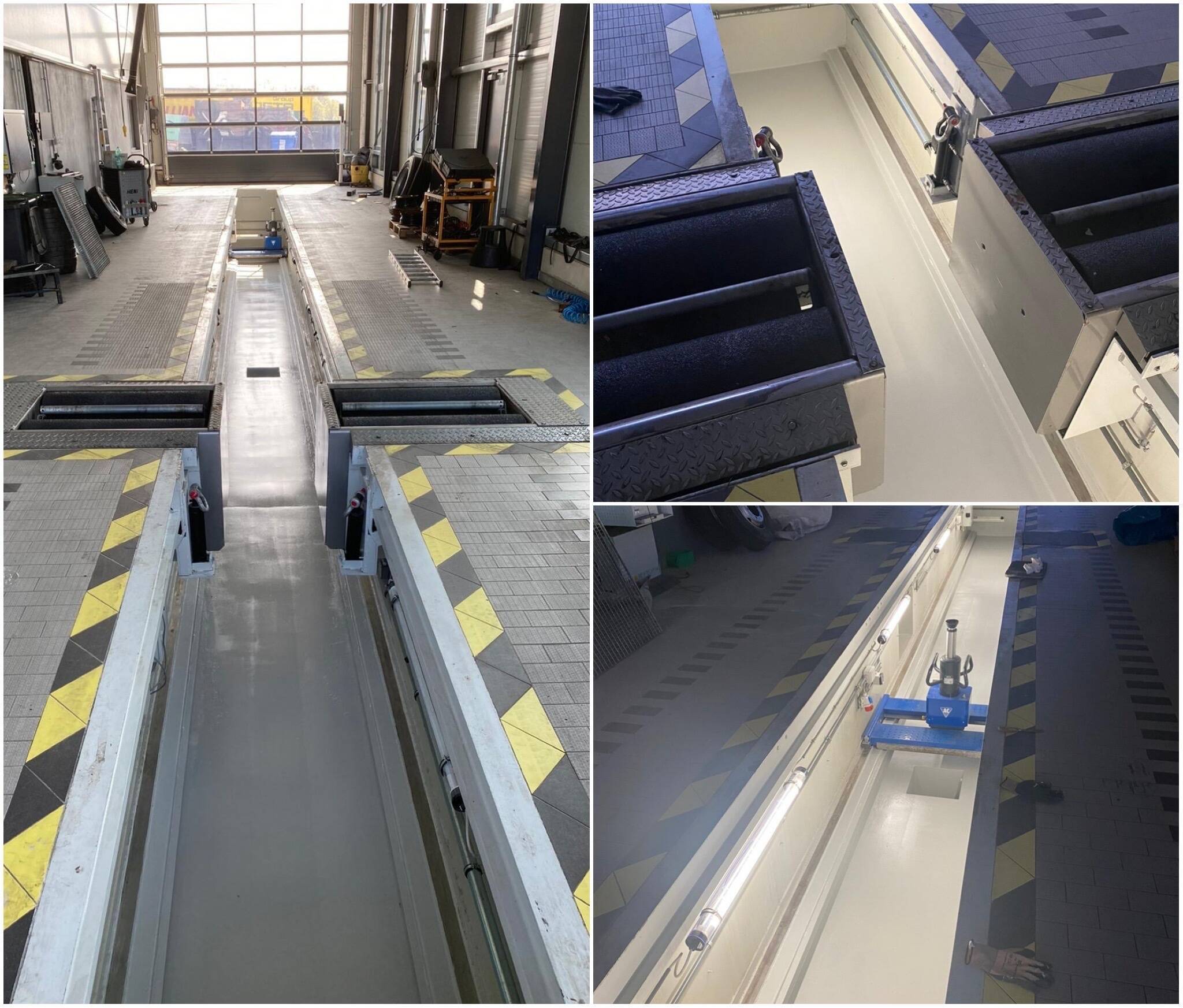 Un esempio installazione in una Volvo Trucks in Germania cin linea revisione AHS con tiranti simulazione peso su asse e cricco a misura fondo fossa AC Hydraulic 15 ton.