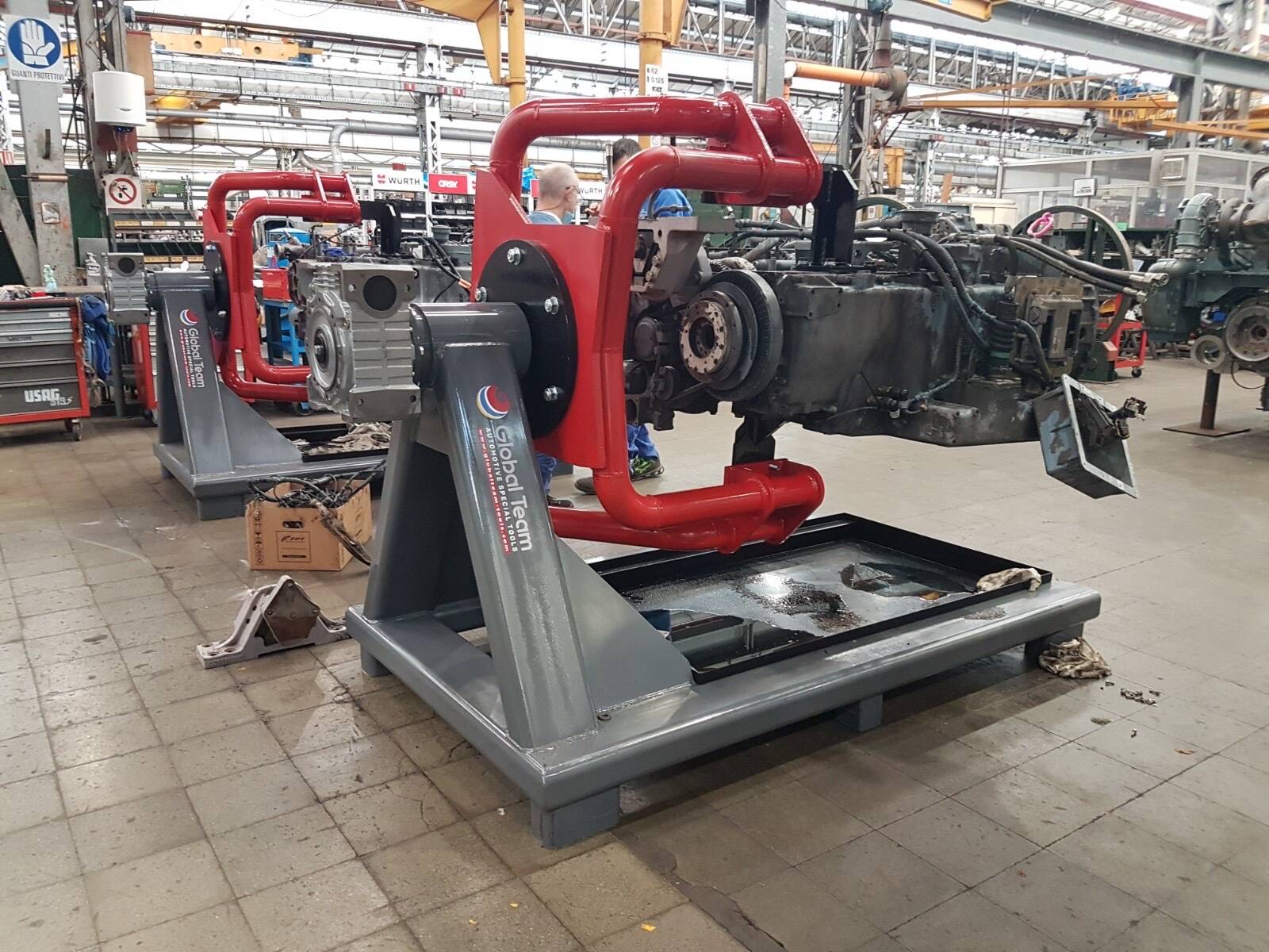 Allestimento premi 5 gira motori speciali ideati con certificazioni strutturali di nuovi gira motori revisioni motori treni Italia . Allestimento zona officina dedicata alla riparazione e revisioni motori con staffaggi a misura . Grande soddisfazione e risultato .