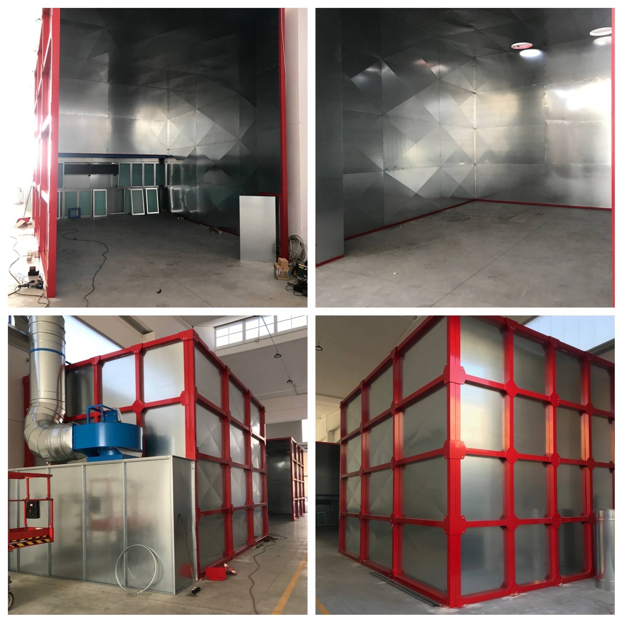 Esempio di cabine per verniciatura e per lavaggi interni complete di aspirazioni a normative . Ideate da nostre produzioni dirette . Alto esempio di lavori speciali ideati da Global Team .