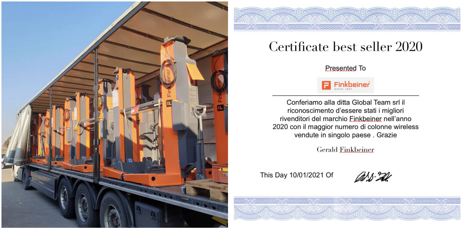 E’ con grande orgoglio che lo staff Global Team comunica a tutti i propri affezionati clienti che grazie anche a loro la Finkbeiner ha conferito alla Global Team un simbolico ma pesante riconoscimento come migliori venditori al mondo di colonne Wireless anno solare 2020. Un risultato inaspettato sopratutto pensando all’anno difficile per tutti in tutti i settori e che appunto vale doppio . Naturalmente il nostro ringraziamento va a tutti coloro che fidandosi di noi hanno acquistato le nostre colonne Wireless Finkbeiner , parlandone bene e per molti clienti come successo , riordinando altre serie , testimoniando senza alcun dubbio la qualita’ riscontrata del prodotto . Mille grazie a tutti ed un augurio di proseguire insieme questa avventura . Lo staff Global Team .